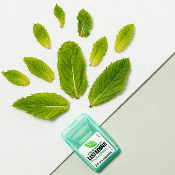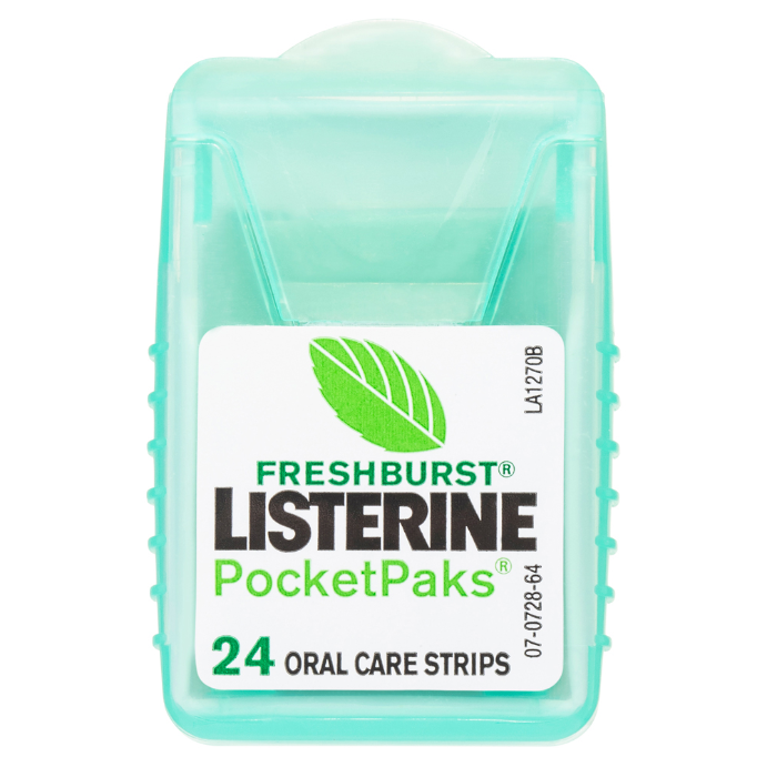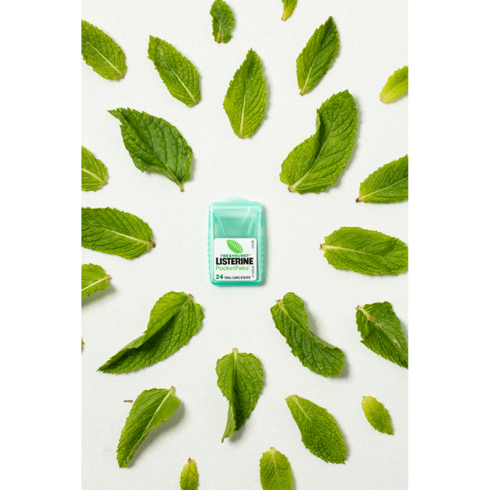 - What it isEach Listerine PocketPaks FreshBurst Oral Strip dissolves instantly to help kill germs for a clean mouth feeling. Sugar free with no calories, freshening your breath by killing 99.9% of bad-breath germs.