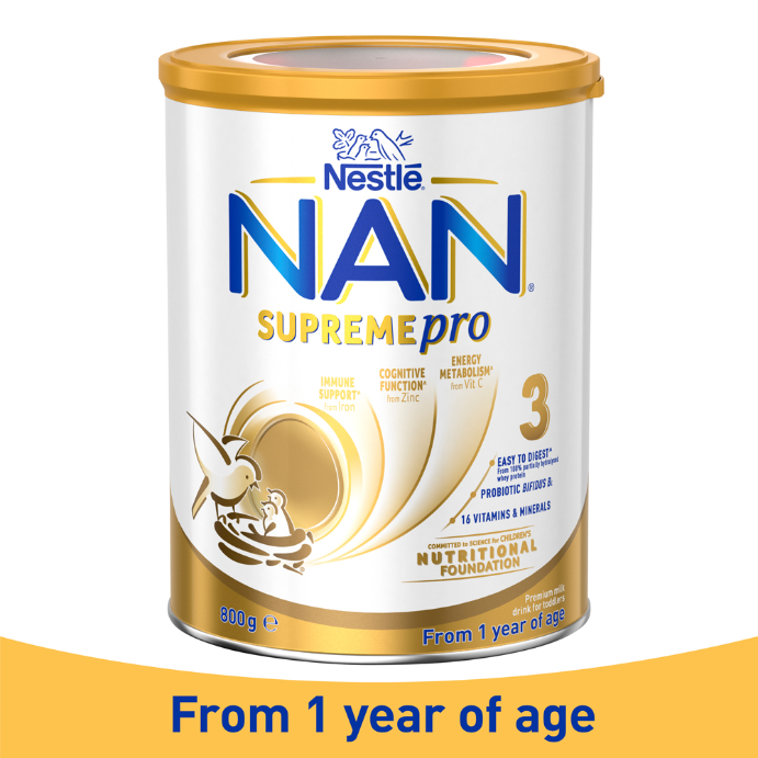 - What it isDuring toddlerhood, your child starts extending their exploration of the world. Appropriate nutrition including Iron & Vitamin C can help support a good functioning immune system. NAN SUPREMEpro 3 has been specially formulated for your toddler to enjoy supplementary to a varied diet when energy and nutrient intakes may not be adequate.