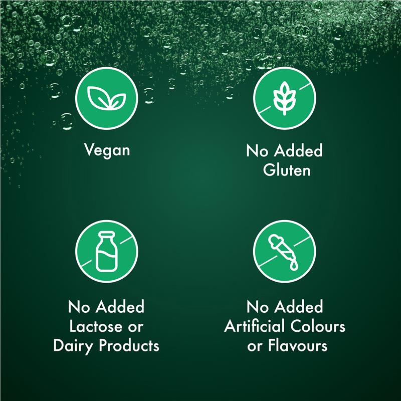 Contains: No added gluten, lactose, artificial colours or flavours, dairy products or animal-derived products. Vegan.