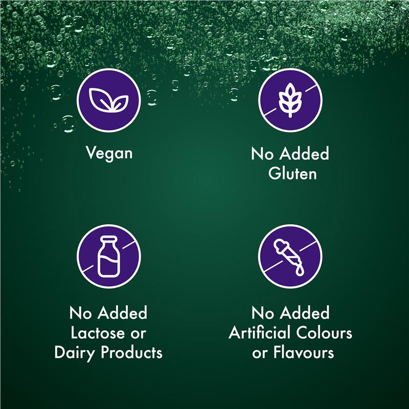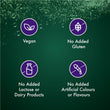 Contains: No added gluten, lactose, artificial colours or flavours, dairy products or animal-derived products. Vegan.