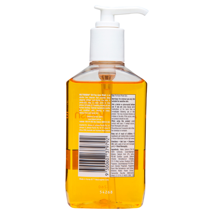 - What it doesNeutrogena Oil-Free Acne Wash is an alcohol free cleanser that provides deep cleaning without over-drying your skin. It penetrates deep to clean pores to help prevent pimples by removing excess oil and surface buildup. Special ingredients soothe and condition skin, leaving it clean, residue-free and never oily.