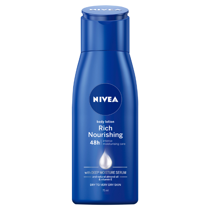 - What it isTransform your dry skin with NIVEA Rich Nourishing body lotion. Providing 5in1 complete care : 1. 48h Deep Moisture 2. Dry-out protection 3. Smooth skin feel 4. Non-greasy 5. Healthy looking skin - you can have the ultimate smooth skin feeling with NIVEA.