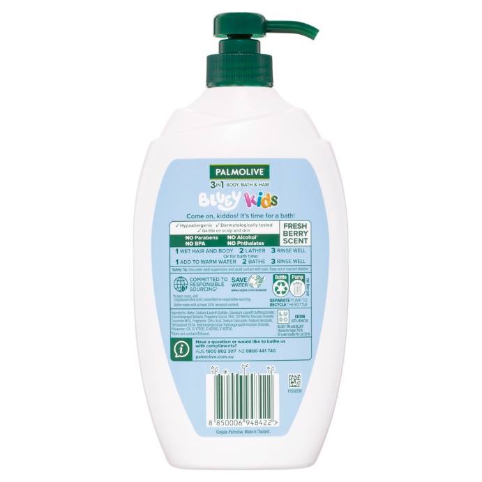 Palmolive Kids 3-in-1 Kids Bluey Body, Bath & Hair Berrylicious 1L