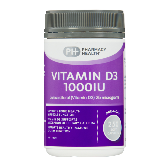 PHARMACY HEALTH Vitamin D3 1000IU 250 Capsules