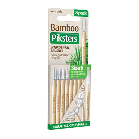Piksters Bamboo Interdental Brushes Green Size 6 | 8-Pack Eco Floss Brushes