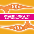 - Bigger, ribbed handle: non-slip grip and longer handle make it easier to reach back teeth.