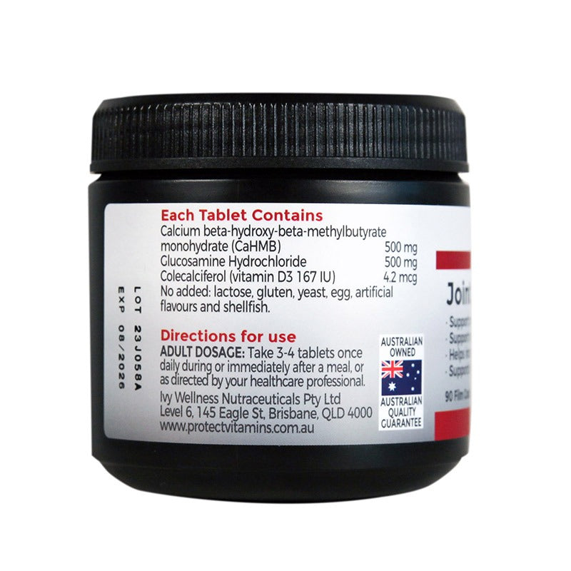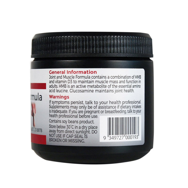 Joint and Muscle Formula combines HMB (calcium beta-hydroxy-beta-methylbutyrate monohydrate), glucosamine, and vitamin D3 to promote muscle strength, joint health, and overall wellbeing. This unique blend helps increase lean body mass while supporting cartilage, bone density, and healthy immune system function—ideal for adults seeking comprehensive musculoskeletal support.