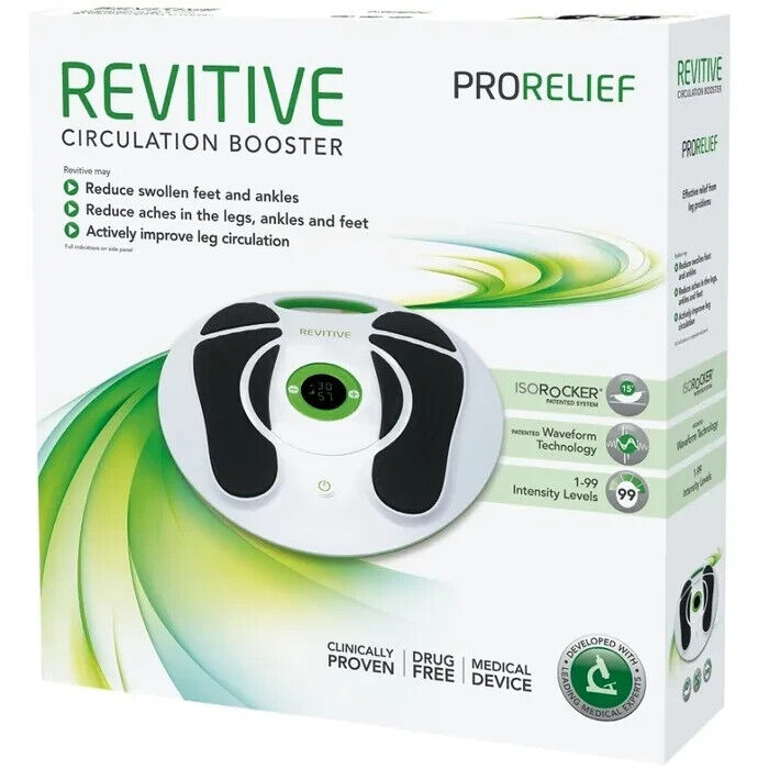 This ProRelief Circulation Booster by Revitive, may help relieve swollen feet & ankles, and aches in the ankles, feet, and legs. It helps improve circulation, target aches, and helps relieve body pain. This is done by utilising Electrical Muscle Stimulation (EMS) and Transcutaneous Electrical Nerve Stimulation (TENS) technologies.