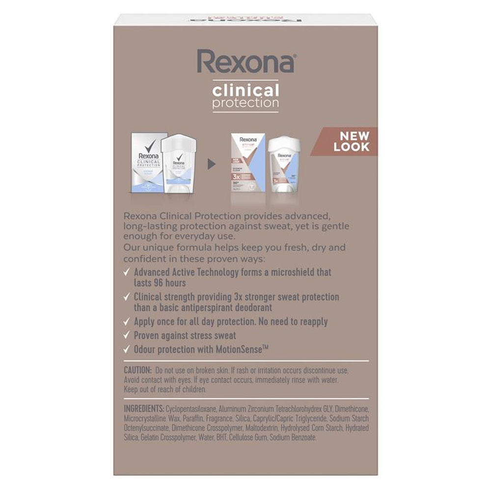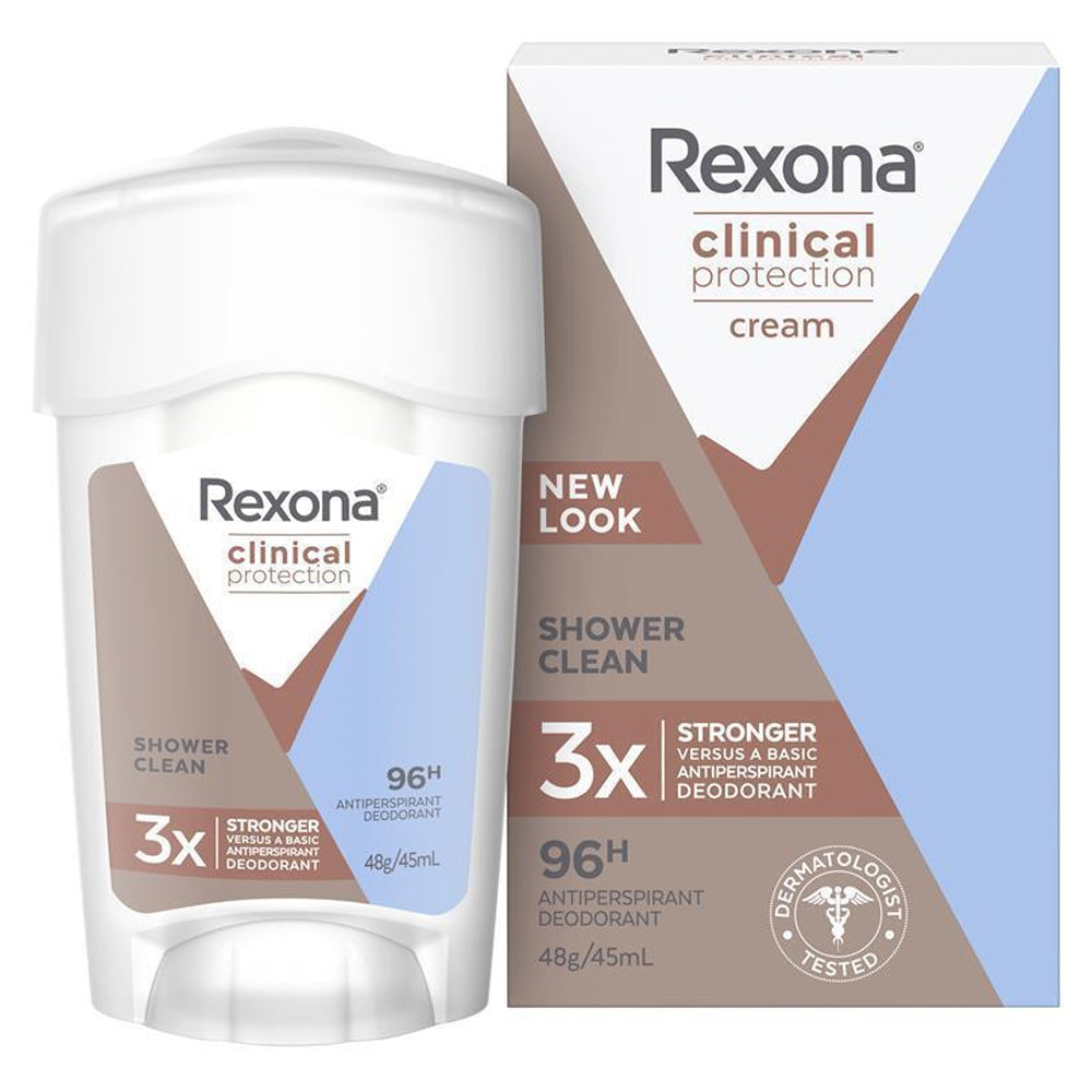 - What it isShower Clean Clinical Protection for women offers up to 3 times more wetness protection than a basic antiperspirant deodorant, yet is gentle enough for everyday use. Keep confident with its fresh fragrance and stay dry with Rexona's most advanced formulation.