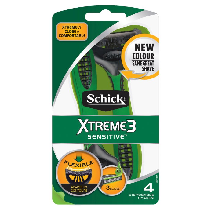 - What it isSchick Xtreme3 Sensitive has 3 blades that flex and pivot to adapt to the contours of your face, so you get a close smooth shave.