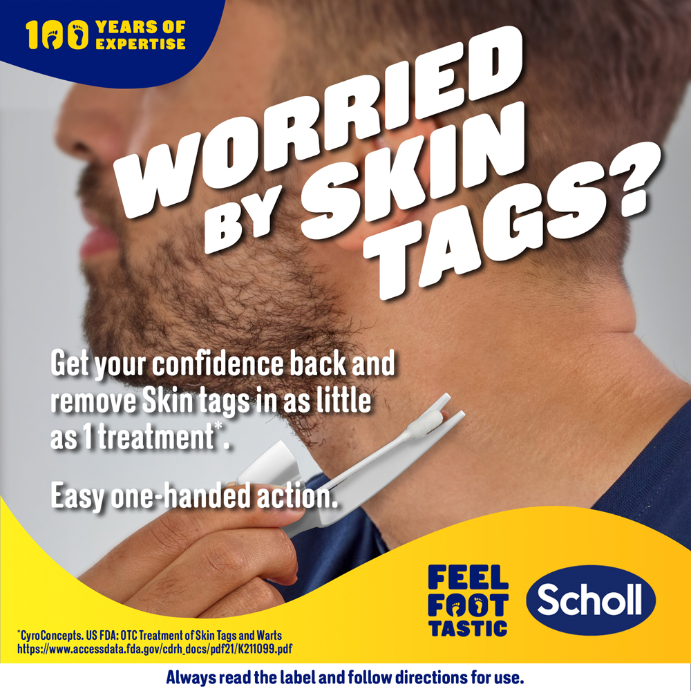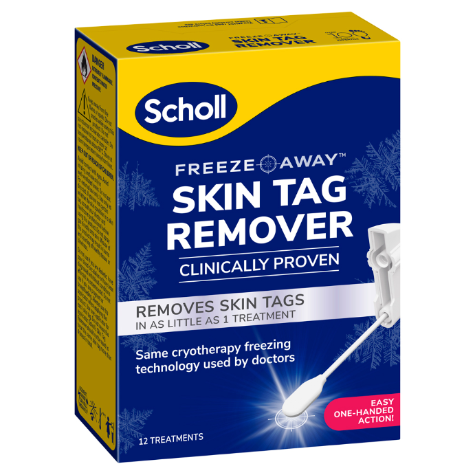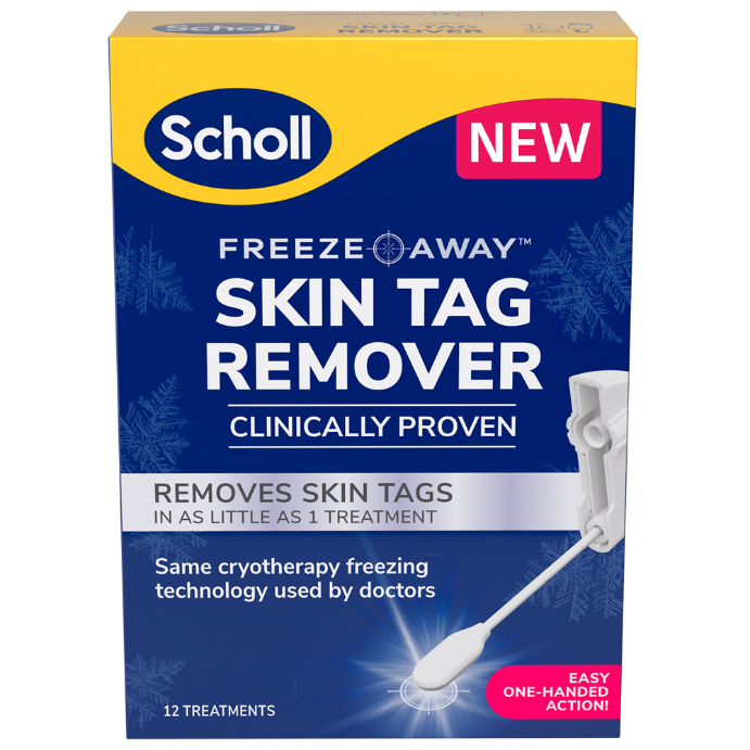 Scholl Freeze Away™ Skin Tag Remover is a Cryogenic skin tag removal solution, safe for in-home application. It is proven to remove skin tags in as little as one treatment.