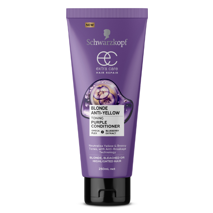 - What it isExtra Care Purple Conditioner is formulated with Anti-Yellow Technology with intense violet pigments to neutralise any remaining yellow and brassy tones. With OMEGAPLEX Antibreakage Technology and Blueberry Extract for hair repair and stronger hair.