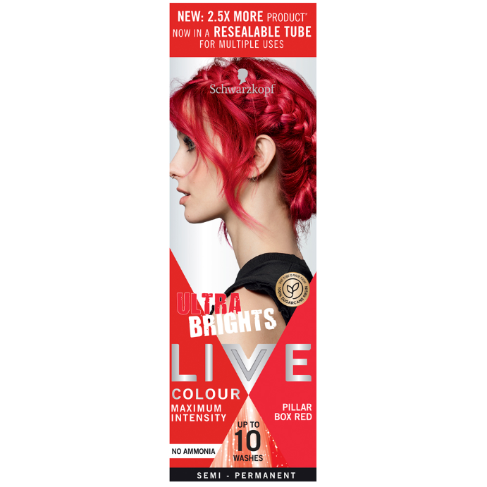 - What it isChange your hair colour as often as you like with Schwarzkopf LIVE Colour Ultra Brights! Express your colour creativity and re-create the latest trends with stunning bright hair and maximum colour intensity for up to 10 washes.