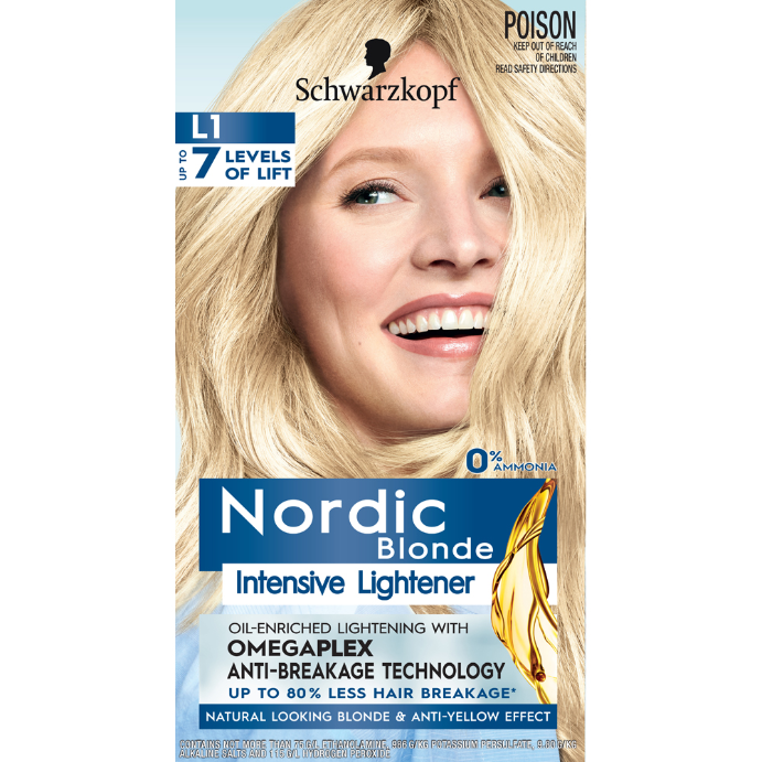 What it isNordic Blonde offers oil-enriched lightening with OMEGAPLEX Anti-Breakage Technology for up to 80% less hair breakage* and a natural-looking blonde with great anti-yellow effect.
