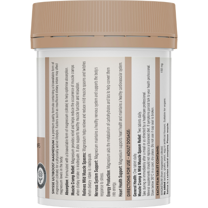 - What it isSwisse Ultiboost Magnesium supports healthy muscle function and relaxation, and reduces muscle cramps and mild twitches when dietary intake is inadequate.