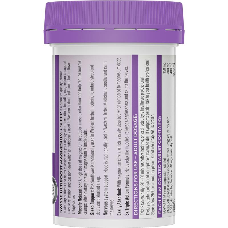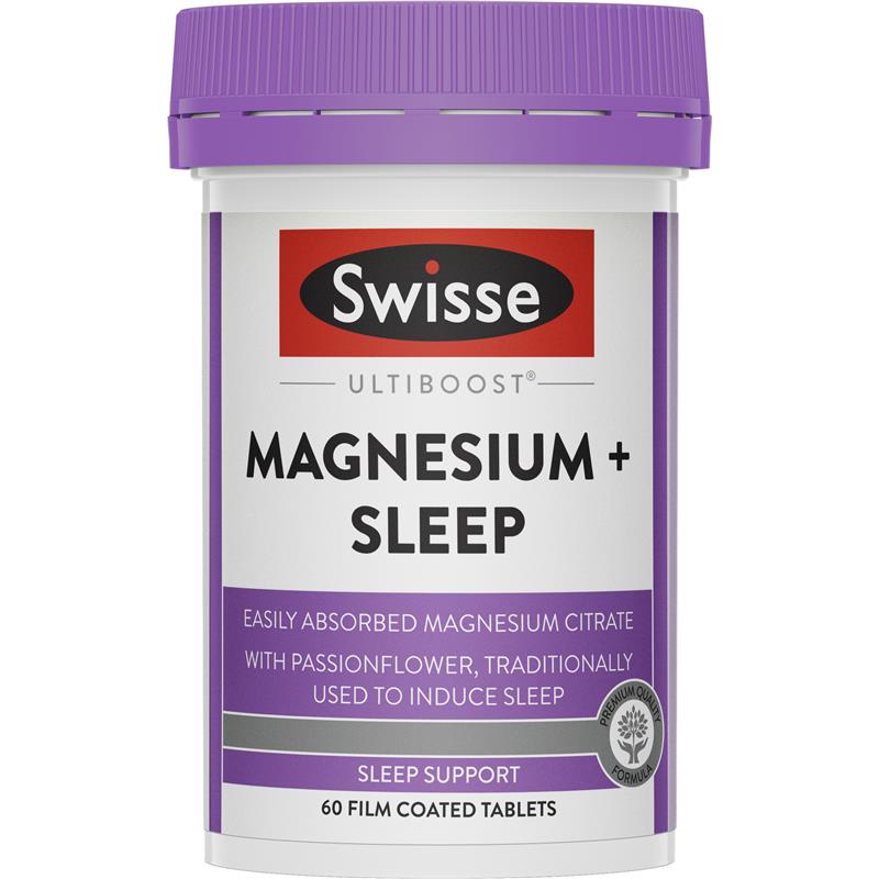 - What it isSwisse Ultiboost Magnesium + Sleep is a triple action supplement which contains a powerful combination of nutrients and herbs to support restful sleep.