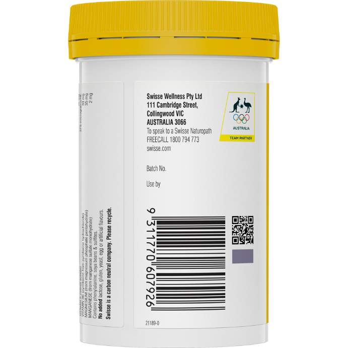 Zinc (from zinc amino acid chelate) 25 mg; Vitamin A (retinol acetate) 375 micrograms/RE; Vitamin B6 (pyridoxine from pyridoxine hydrochloride) 30 mg; Magnesium (from magnesium phosphate pentahydrate) 35 mg; Manganese (from manganese sulfate monohydrate) 2 mg