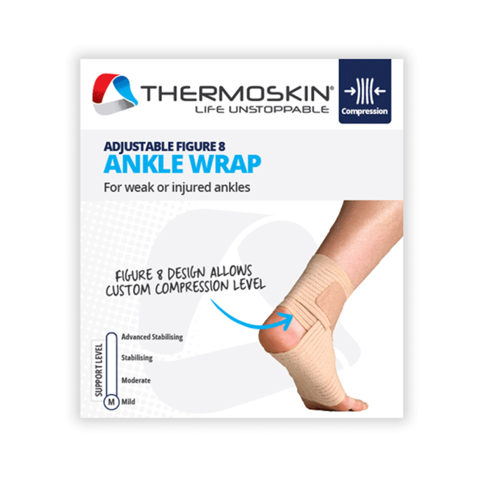 - What it doesThis adjustable ankle wrap is designed with a figure 8 system to offer personalised levels of compression and a customisable fit. Its universal design means it can be worn on either ankle, making it an ideal support for almost all ankle injuries.