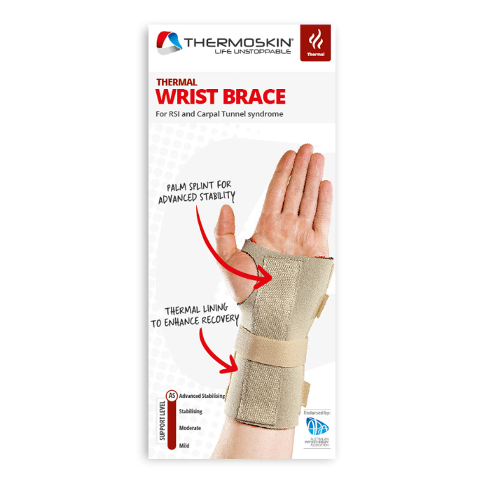 - What it doesFeaturing a metal splint positioned at 25 degrees to provide the protection and support needed for Carpal Tunnel Syndrome, overused / weak wrists, and sprains and strains. The Thermal Wrist Brace provides advanced stabilising protection for wrist injuries and promotes increased circulation to aid prevention and recovery through the use of our exclusive thermal regulation lining.