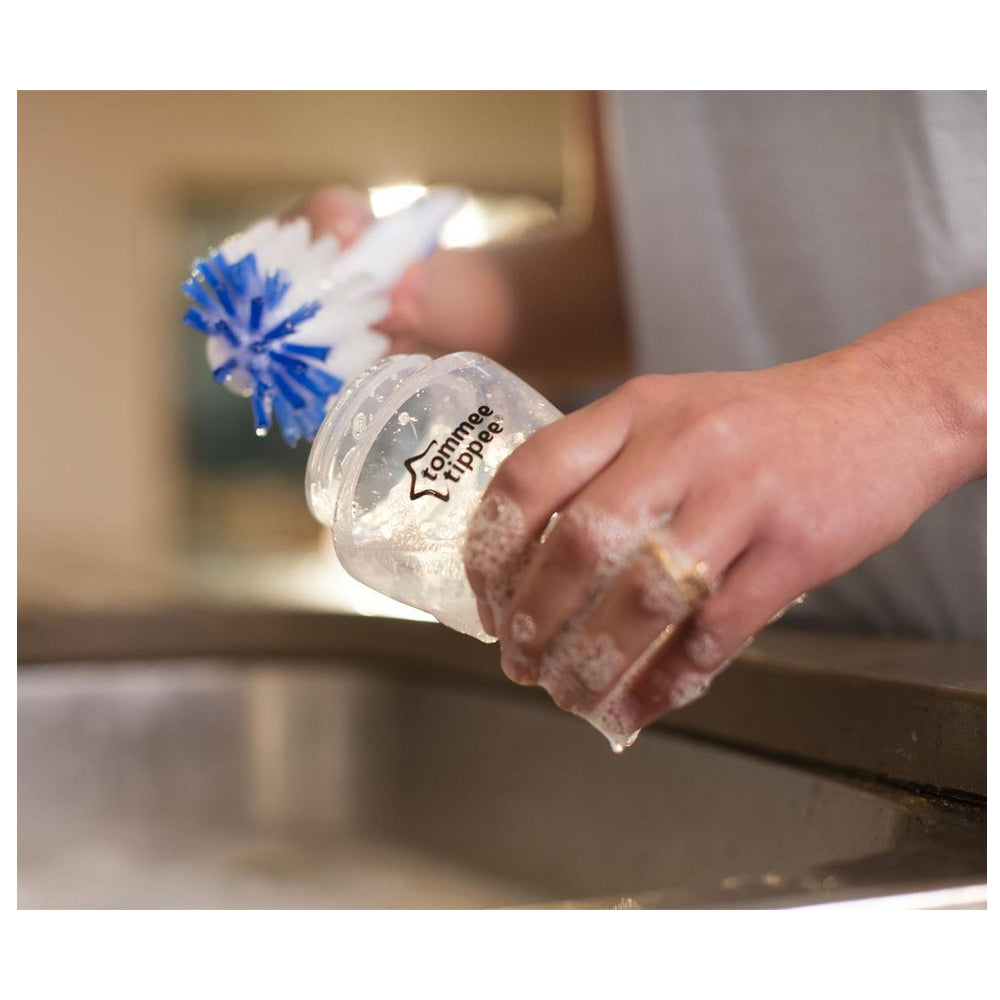 Perfect for getting on the inside of the rim and inside the teat. Super soft but cleans very well. The Tommee Tippee Bottle Brush is specially designed in 2 pieces for cleaning bottles and teats, with an extra wide brush end for reaching hard-to-clean areas. Durable nylon bristles and a non-slip handle make bottle cleaning easy and effective. Did you know sponges and dishcloths can harbour harmful bacteria? The Tommee Tippee Closer to Nature bottle brush is sponge free and designed to effectively clean all the nooks and crannies of a bottle and nipple and it is sterilizer compatible for ultimate peace of mind.